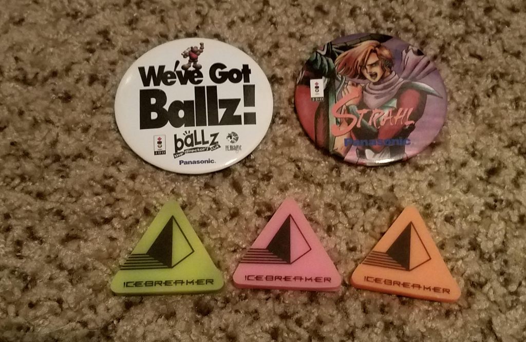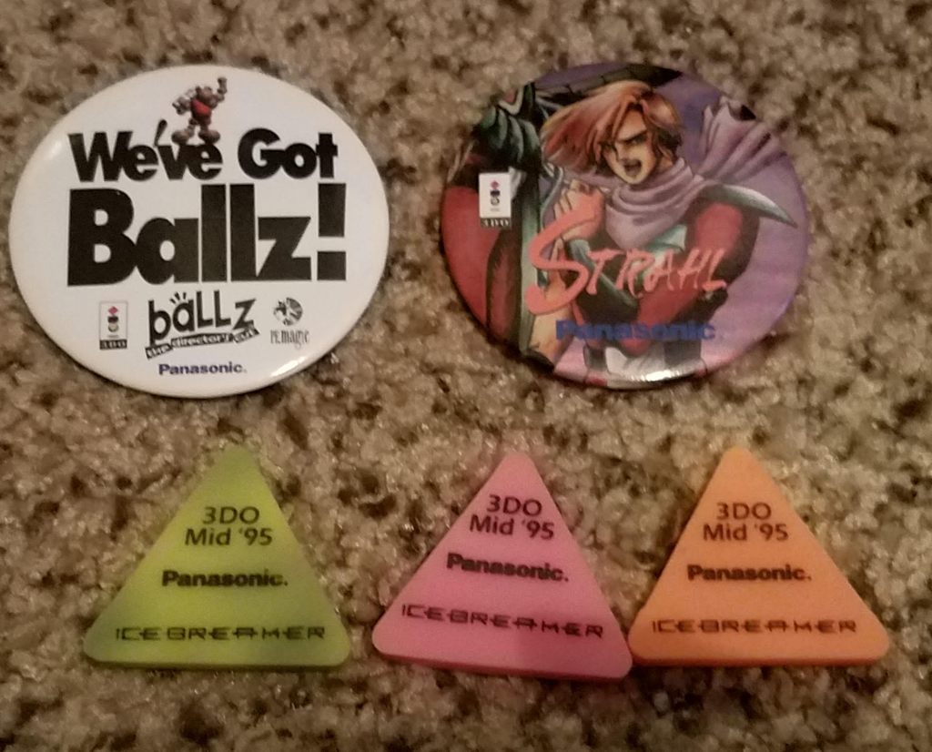 The first two images of items were sent to an individual by Panasonic when he called and asked about an upcoming release. He said the man on the phone was really nice and Panasonic promptly sent him a package that included these pins, erasers, and the UMK3 hat pictured in the apparel category.